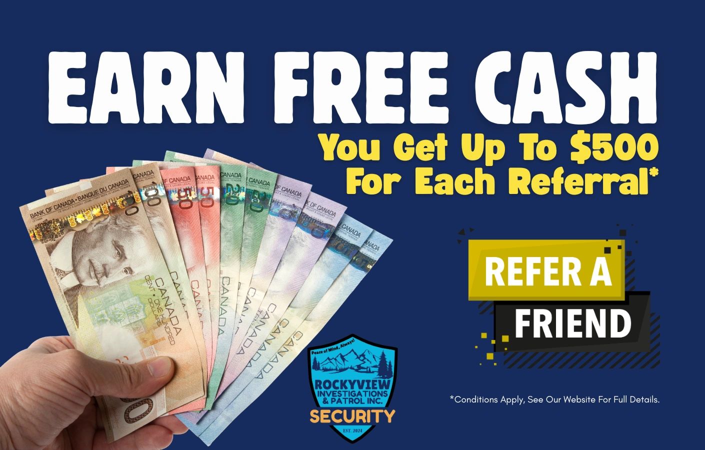 We believe loyalty should be rewarded. That’s why we offer our Referral Rewards Program—open to both clients and non-clients! Simply refer someone to us, and when they sign up for a new Alarm or CCTV package, you’ll receive $250–$500 in cash as a thank you. Your referral bonus is sent conveniently by e-transfer within 7 days after equipment installation, making it quick, easy, and rewarding to share our trusted security solutions with others. Read the full terms & conditions HERE.
