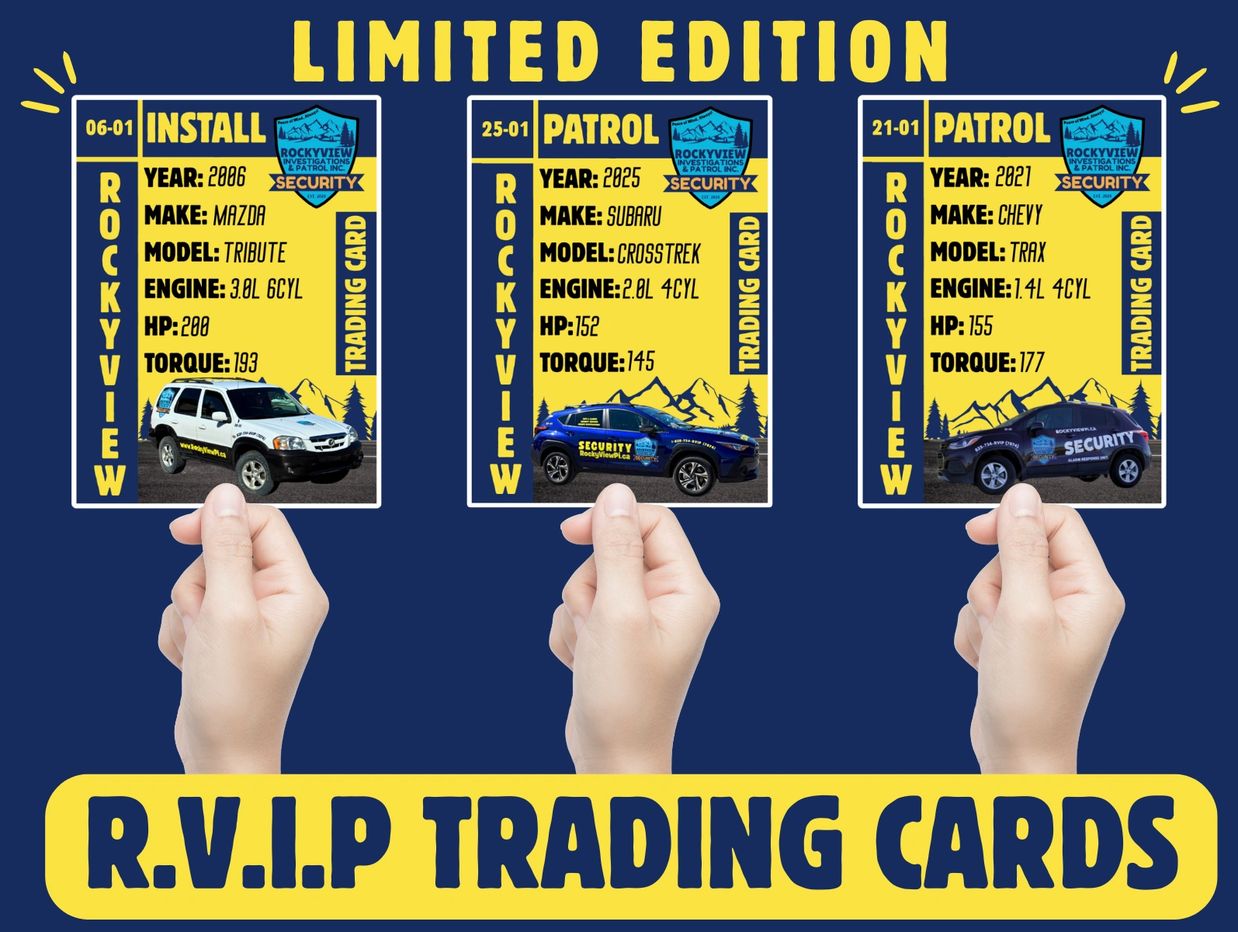 At RockyView Investigations & Patrol, we’ve always done things a little differently — and our uniforms are no exception. While most agencies sport sewn-on patches, ours are printed directly into the fabric, making us sleek, sharp, and one-of-a-kind. But we get it… collectors love patches and memorabilia. So, we found a way to bring that spirit to life — introducing our Limited Edition Patrol Vehicle Trading Cards! Just like your favourite hockey cards, each one showcases exclusive stats and details about our patrol fleet.